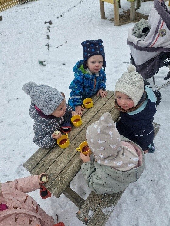 Begleitet von schwungvoller Kinderpartymusik konnten die Kinder nach Herzenslust tanzen und sich bewegen. Die Musik sorgte für eine ausgelassene Stimmung und lud alle dazu ein, mitzumachen. Draußen wartete der Schnee auf die kleinen Entdecker: Es wurde gelaufen, gelacht und gespielt – ein echtes Wintererlebnis.