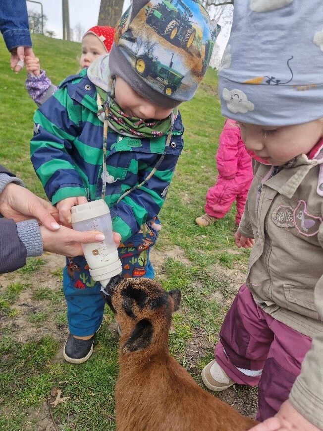Am 24. März 2026 machten sich die Kinder der Krippe auf den Weg nach Falkenberg. Gut eingepackt und voller Vorfreude wanderten wir gemeinsam los. Das Ziel war ein Bauernhof mit Schafen und sogar einigen kleinen Lämmern.