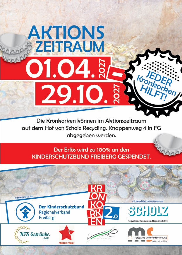 Kleine Dinge können Großes bewirken: Sammeln Sie schon jetzt fleißig Kronkorken und unterstützen Sie damit die wunderbare Aktion von Marcel Schlenkrich zugunsten des Kinderschutzbundes Freiberg.